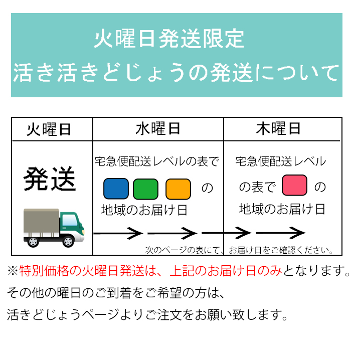 「活き活きどじょう」は火曜日に発送して、